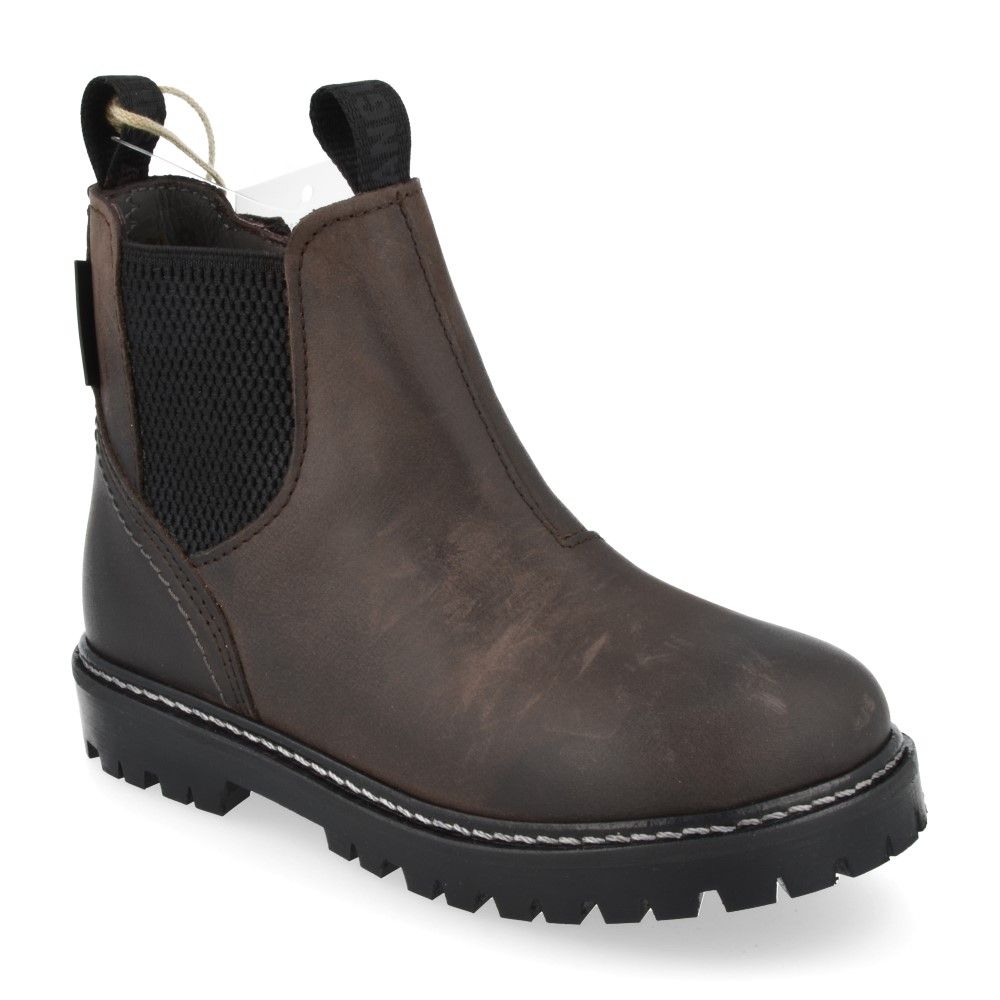 Dit stijlvolle korte laarsje van Angulus is uitgevoerd in hoogwaardig donkerbruin gevet leer en voorzien van een elastische inzet én een rits. Dankzij het geïntegreerde waterdichte membraan blijven kindervoetjes ook bij nat en koud weer droog, warm en comfortabel. *Let op: dit model valt een maat groter.*