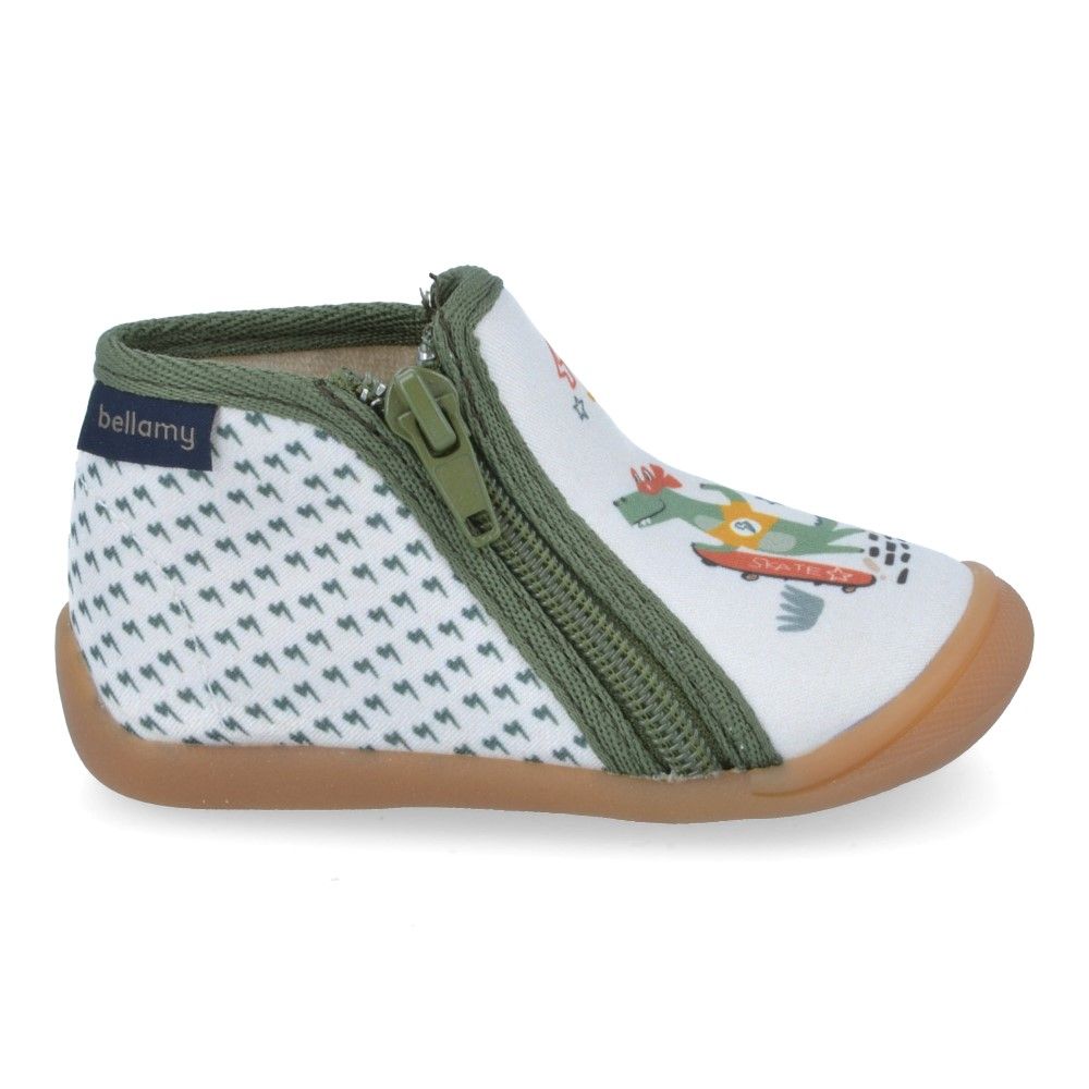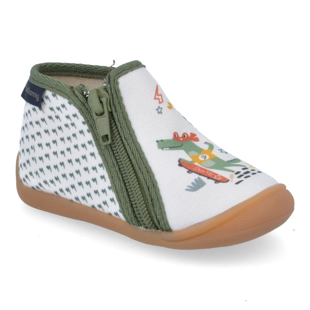 Schattige en praktische pantoffels voor kinderen die houden van speelse en comfortabele schoenen. Deze Bellamy pantoffels met print van skatende krokodillen combineren stijl, ondersteuning en kwaliteit. Dankzij het stevige hielstuk, de lederenzool en de flexibele loopzool bieden ze een uitstekende pasvorm, grip en comfort. Let op: ze vallen één maat kleiner.