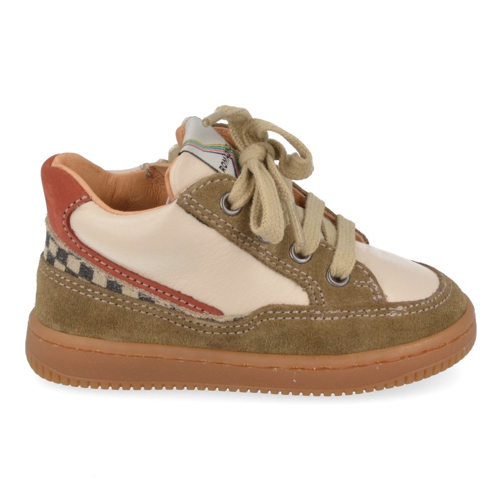De kaki Romagnoli sneakers voor jongens combineren een sportieve, stoere look met optimaal draagcomfort. Het perfecte hielstuk biedt stabiliteit bij elke stap, terwijl de fijne leren binnenvoering en de uitneembare binnenzool zorgen voor zacht en comfortabel lopen. Ideaal voor schooldagen, speelafspraken of buitenavonturen. Taillering: valt normaal; breedte: gemiddeld.