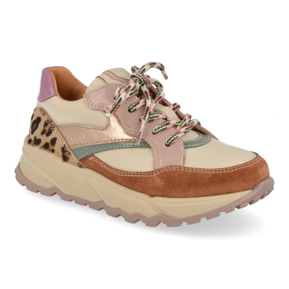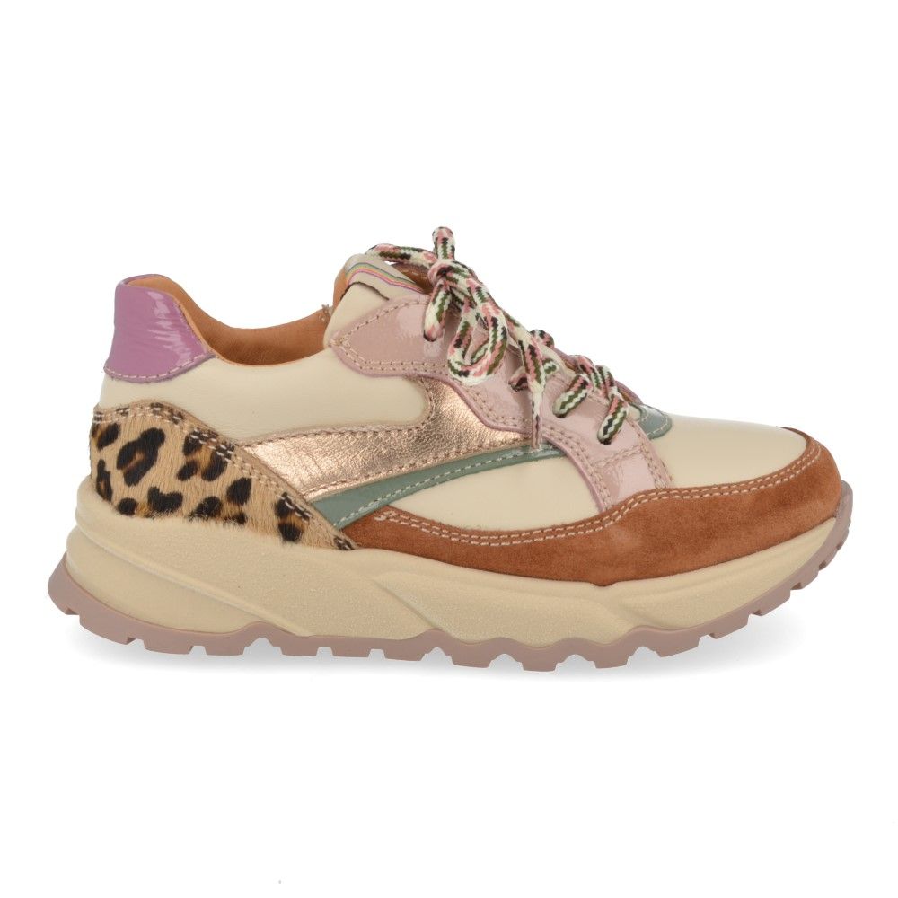 Romagnoli sneakers ecru Meisjes (sneaker in combi kleur roze en leopard - 7364R063) - Junior Steps